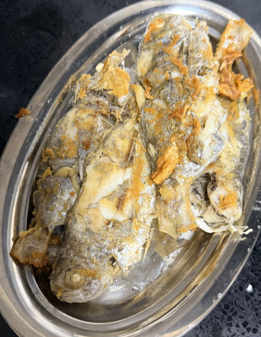 两面煎到金黄以后就可以出锅。我大概两面分别煎了8分钟,感觉有点久,鱼肉稍微硬了一些。